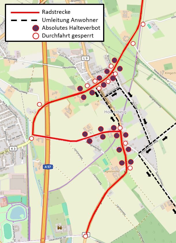 Darüber hinaus gilt am gesamten Veranstaltungstag ein absolutes Park- und Halteverbot, um die Rennstrecke für die Radfahrer freizuhalten. Entsprechende Verkehrsschilder werden bereits 3 Tage vor Beginn der Veranstaltung aufgebaut. Widerrechtlich abgestellte Fahrzeuge müssen leider kostenpflichtig abgeschleppt werden.